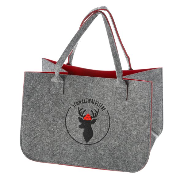 Filztasche Schwarzwald Heimatliebe, grau mit Stickerei 40x27 cm - Einkaufstasche, Heimat Handtasche, Geschenktasche Grau