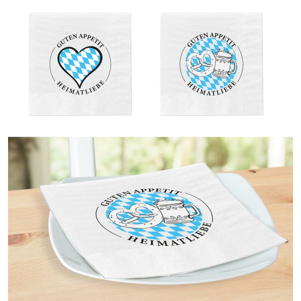 Servietten Heimatliebe Bayern mit Herz 4 x 20er Pack (33x33 cm) - Papierservietten, Heimat, Tischdeko, Party