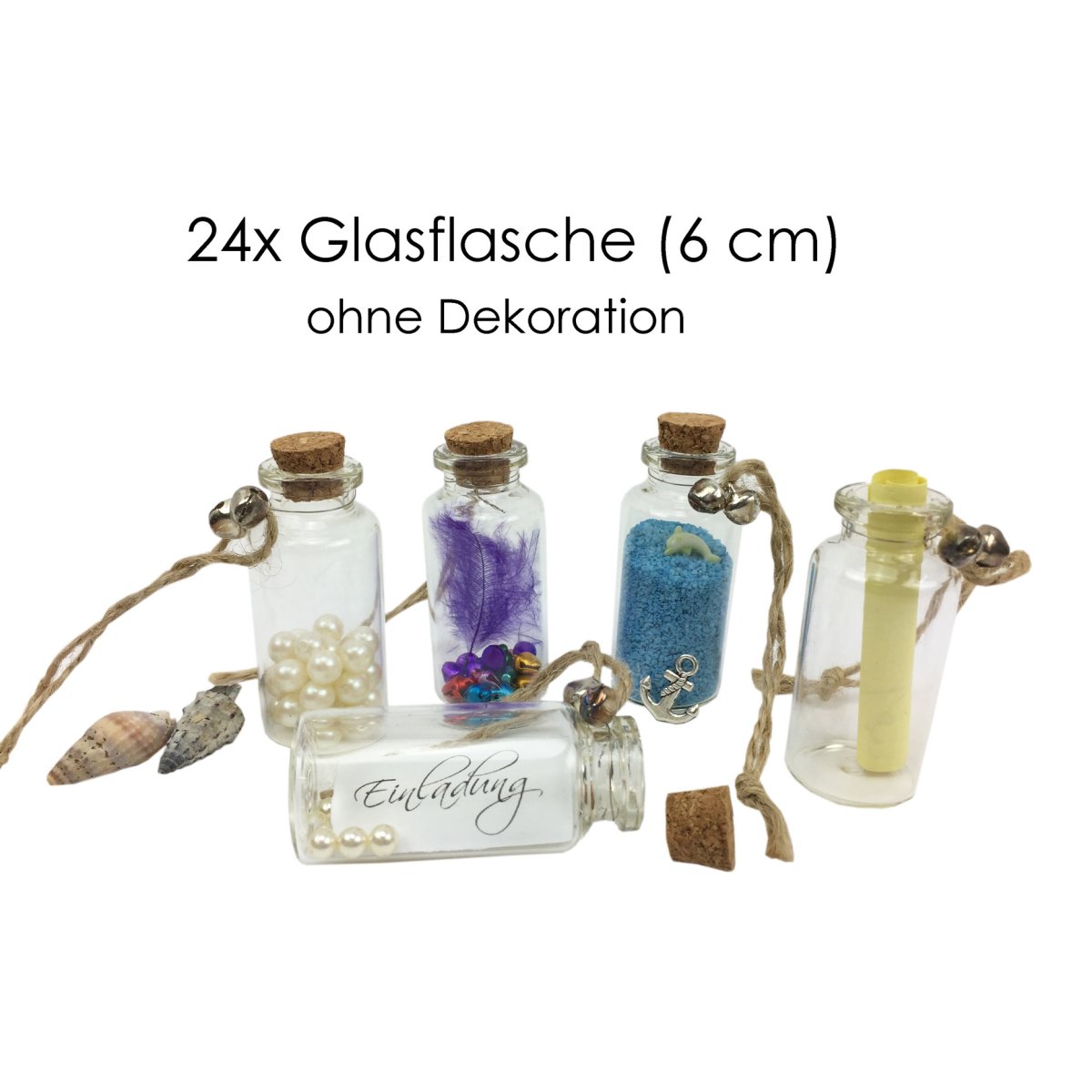 Lieferumfang: 24x kleine Glasflaschen mit Glöckchen und