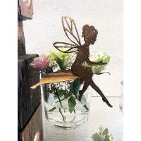Rostfigur Fee sitzend auf einem Blatt (oder als Gartenstecker, Tischdeko